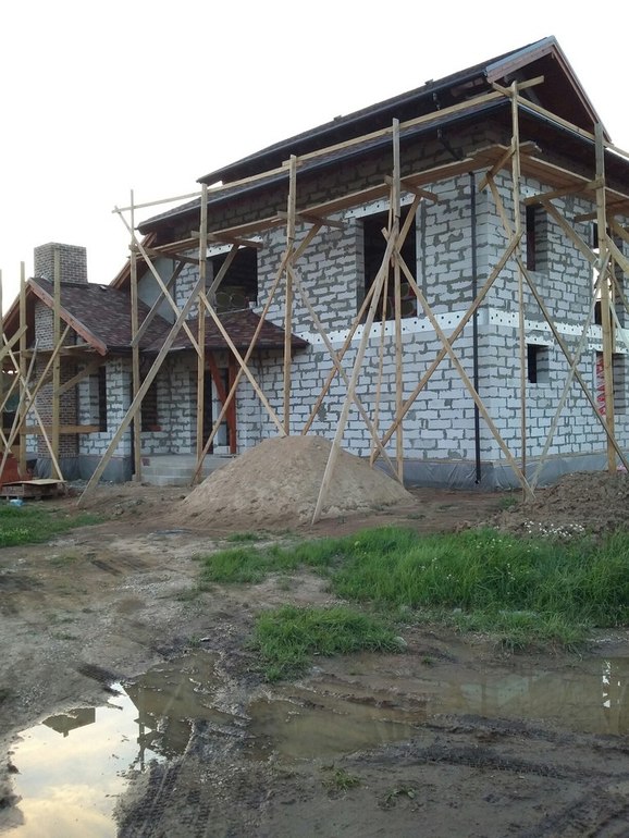 Уже приехала другая бригада, будут закладывать внешний утеплитель, ну и потом делать внутреннюю отделку.