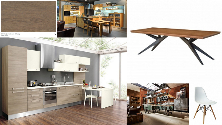 Зал и кухня: стены будут молочно белые, пол серый. Стиль Loft, очень уж нам он нравится, особенно диван Честерфильд и сочетание дерева, метала и кожи!!!