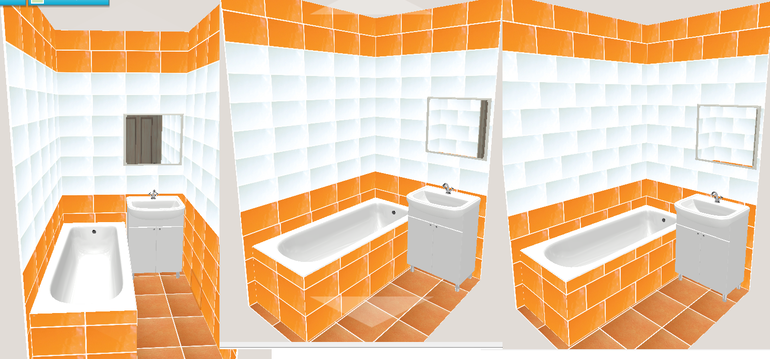 Интерьерное решение ванной комнатыПервый вариант или второй?? Нужно решить сегодня, первый ряд уже выкладывают и увидев его появилась идея выложить вразбежку... Конечно на 3д не все так, как будет, и выкладывать будем от видимого на картинке угла, и низ оранжевый будет от ванны две полосы вверх и вниз сколько поместится) и с низом ванны еще не определились, возможно сделаем белый съемный экран... да и полы я забыла добавить))) но все же... Какой вариант приятнее глазу, по вашему мнению?