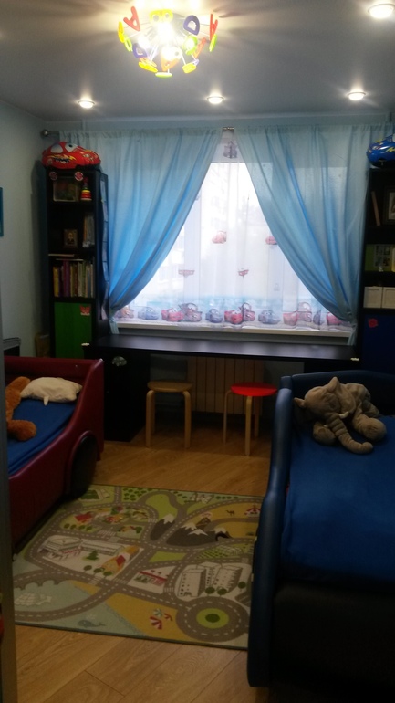 Тюль с машинками) да мы решили все одинаковое, двоим кровати машины(они правда разные,но суть что машины у обоих) а игрушки общие)но все равно драки бывают)) не всегда есть возможность купить две одиноковые игрушки))) а разница у нас два года) у вас сколько разница)