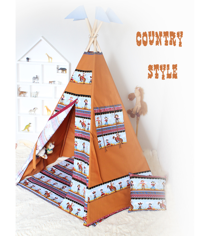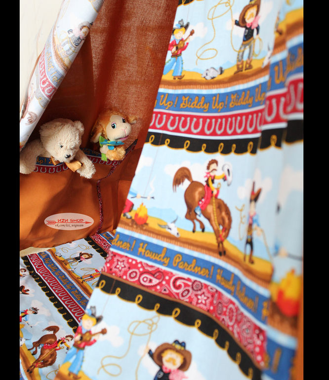 Интерьерное решение детской комнатыВсе детки любят прятаться в домиках, строить себе жилища из простыней и подушек. Но сейчас можно придумать красивый и функциональный уголок и порадовать своё чадо. Выбираем американский принт с ковбоями и лошадками и шьем детский домик.