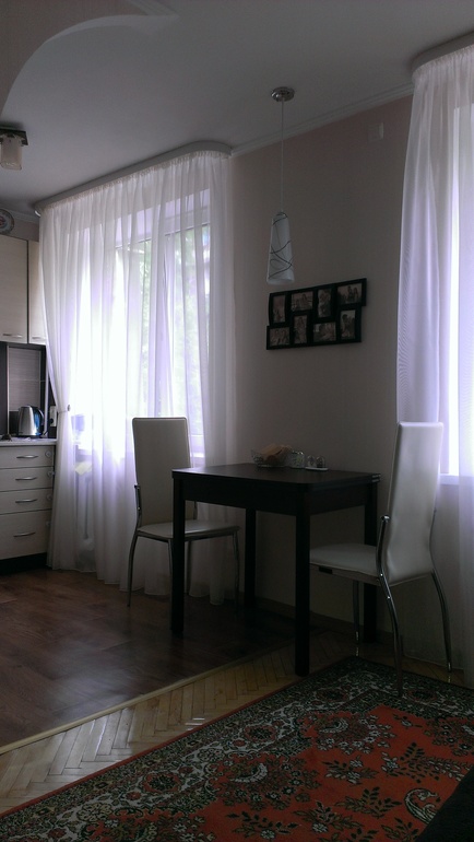 У меня кухонька маленькая и стол обеденным столом сложно назвать, но вот