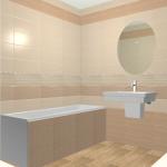 Только на пол светлый керамогранит(цвет-моноколор) будет выложена по диагонали. Под мою серию подошла отлично! Что кас.туалета, то решили не перегружать и сделать центральную заднюю стенку из псевдомозаики цвета бискотто более темного, а торцевые стены светлый беж,также,пол светлый.