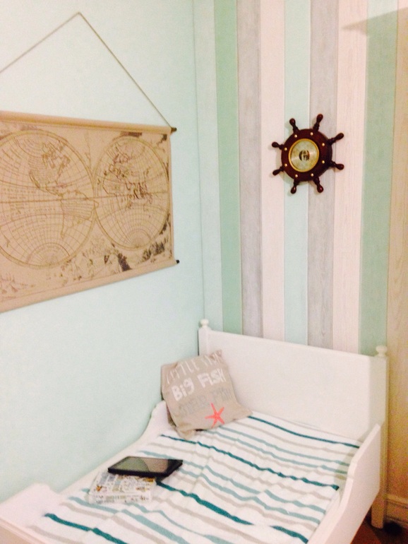 Ирина, если вы о разноцветной стене, то это крашеная вагонка, эксклюзив, так сказать 😆 а так, сейчас такой выбор обоев, и бирюзовый очень популярный цвет)