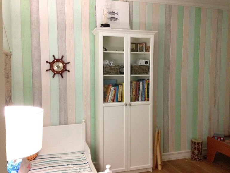 Да, о разноцветной. То-то я думаю, что уж очень резко очерченные полоски:) красиво получилось, цвета приятные. Ищу полосатые обои на одну стену, пока не попадались такие, чтобы в душу запали, как ваша вагонка.