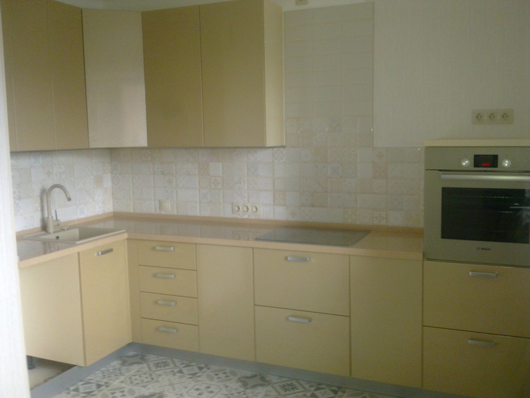 - или купить 4шт бежевых, тк достаточно акцента в виде узора на плитке и на полу и на фартуке.