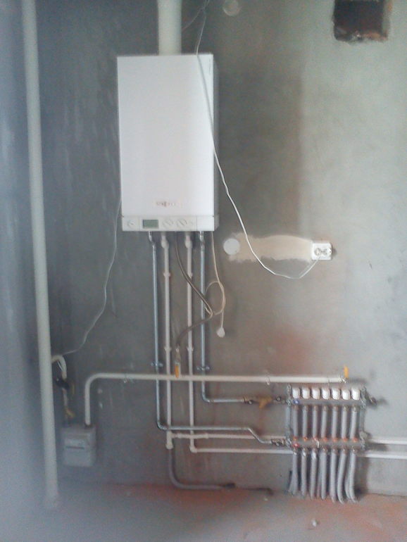 У вас можно на сколько хотите трубы пойдут рядом со счетчиком. У вас газ к котлу на гибкаче, просто наростите воду- подводку к котлу и все.