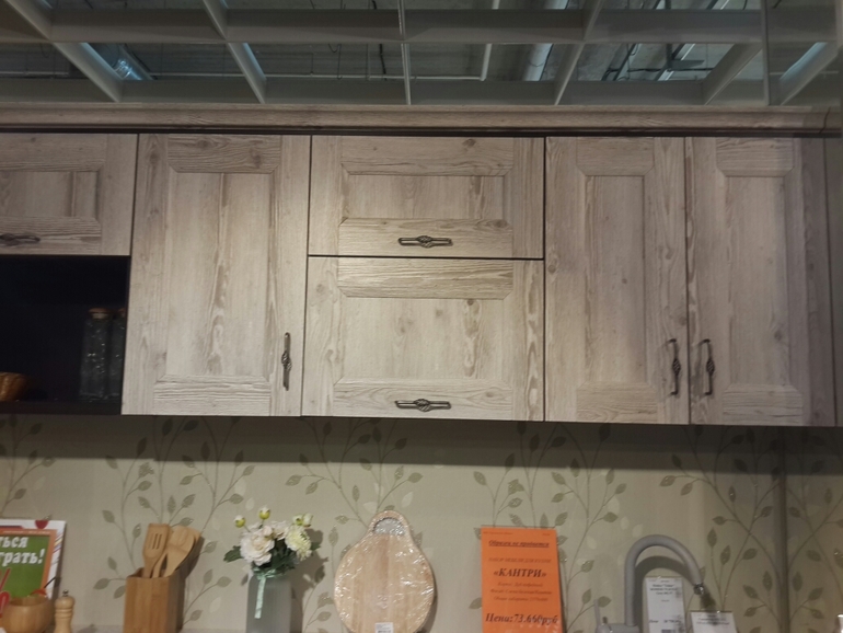 В магазине он сочетался только с крашенным коричневым, но мне опять же не нравятся эти крашенные шкафы.