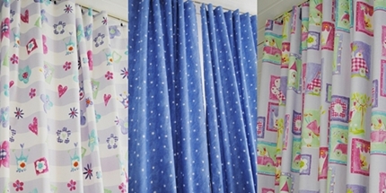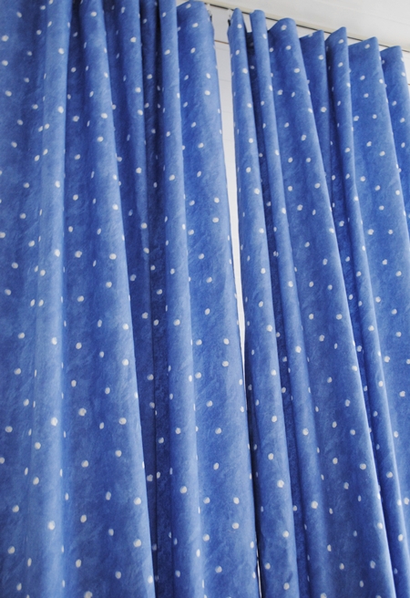 В продаже три вида штор: небесно голубые в горошек, нежно сиреневые с рисунком, шторы с горизонтальной белой и сиреневой полосой. Ткань известного английского брэнда Prestigious textiles 100% хлопок.