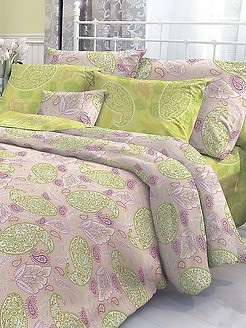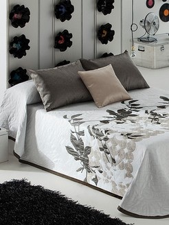 При таком активном рисунке на стенах, нужно избегать повторения в текстиле такой же насыщенности вензелями и завитками. Сейчас хорошо свяжет все что есть между собой покрывала и подушки с более крупным и не насыщенным рисунком, если покрывала светлые , то подушки могут быть контрастными. Вообще все лучше рассматривать индивидуально. Сложно рассказать какое, потому на примере понятнее. Прикрепила их. И над кроватью было бы неплохо повесить декор. И тогда все очень изменится и смотреться будет органично, собранно и цельно:)