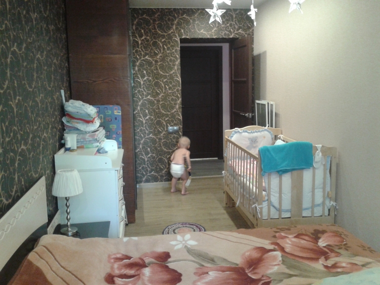 Шкаф к той стене это очень малая вместимость. Где дверь и так туннель в 70см и если еще и шкаф с антрисолью там вообще вход в пещеру будет. А кроватка сейчас максимально удобно стоит и проходу не мешает и относительно комода удобно. Все уже за два года переставлялось в той зоне и нашло свои места.