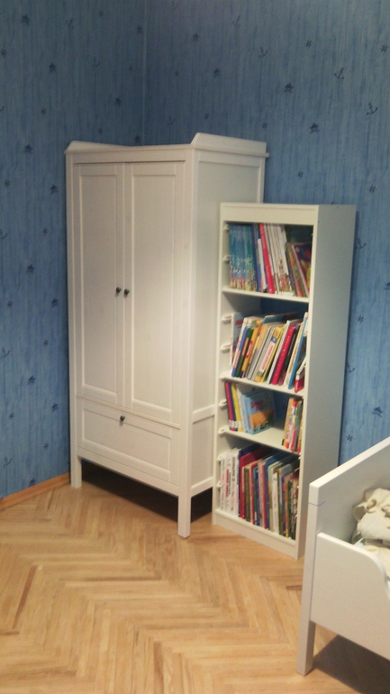 стеллаж пустой, потому что уже шкаф разбирать собирались.
