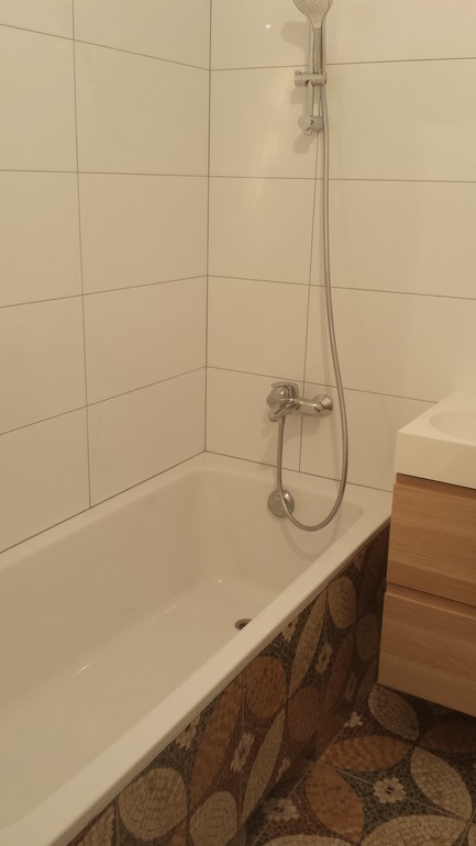 Можно у вас узнать: у вас ванная на ножках стоит? Наш мастер говорит, лучше на кирпичи поставить, чтобы 100% не гуляла.