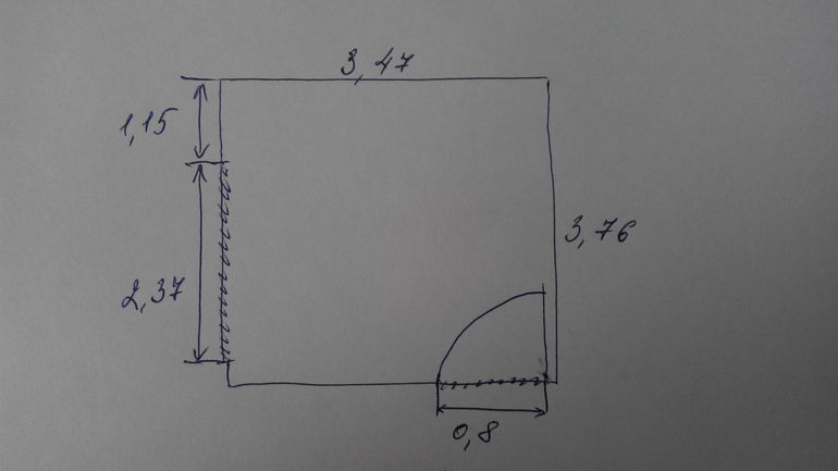 Комната 3,76 м * 3,47 м. Окно не по центру стены.
