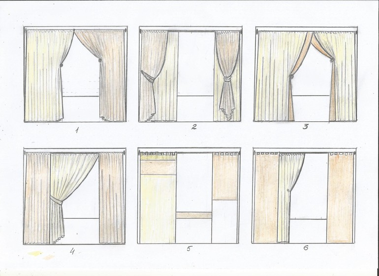 Рис. 6. Совмещаем четвертый и пятый вариант, т.е. декоративные портьеры одинаковой ширины на лямках и рабочая портьера.