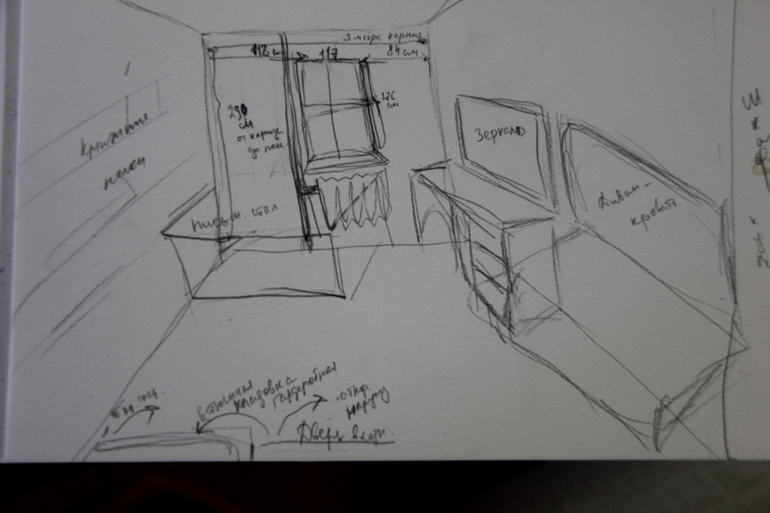 Могу предложить следующие варианты верхних штор. Скан получился корявенький, что-то в настройке сбилось. Это пока наброски, т.е. понравившийся фасон надо будет доработать под выбранную ткань и уточненные размеры (высота подоконника, верхний простенок, мебель у окна).