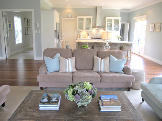 Интерьерное решение кухниРемонт уже на этапе покраски стен, вот думаю кухню-гостинную голубого цвета сделать, кухонная мебель белая, пол светлый (теплого оттенка) столешницу хочу под дерево, вот как быть с диваном? может быть бежевый?(добавить теплых цветов) или серый? а может темно синий? что то картинка не складывается)