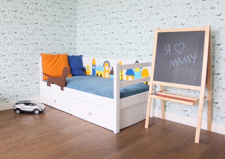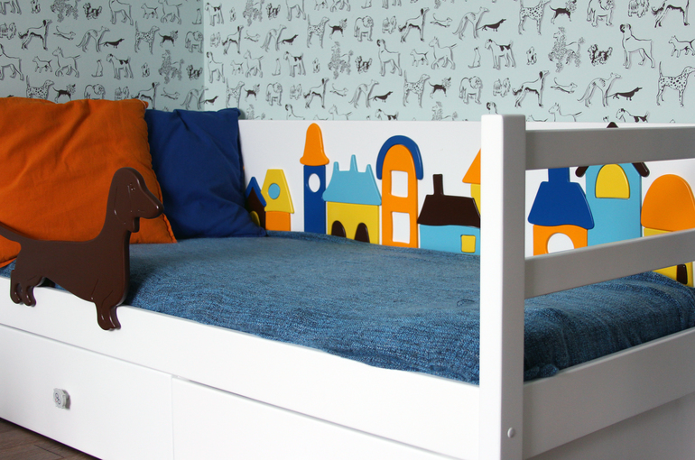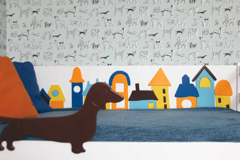 Бортик в виде таксы придумали, чтобы связать с "собачьими" обоями.