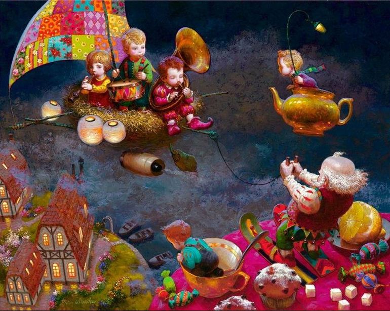 Интерьерные штучки.Захотелось мне напечатать картинку на холсте,чтобы повесить над детской кроватью. Пересмотрела много из того,что предлагают в мастерских на детскую тематику, смотрела и думала:"хоть что-нибудь мне понравится,наконец?!". Потом пришло в голову поискать именно авторские картины художников, и тут уже захотелось все и сразу. Вот, например, картины В.Низовцева. Ну разве не очаровательные?