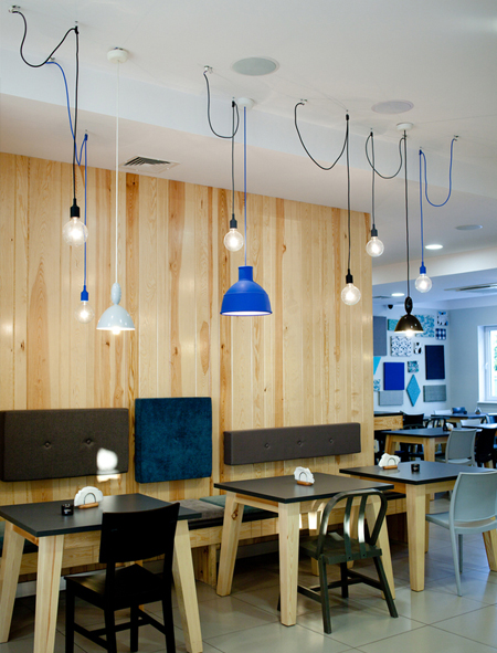 Интерьерное решение кухниНикак не могу решить со светом в кухне. Потолки оштукатурены, дырка под люстру одна и на одном выключателе. Т.о. за обеденным столом темно. Сначала запала мне идея развесить лампочки, тянущиеся из центральной тарелки, на крюки где мне нужно.
