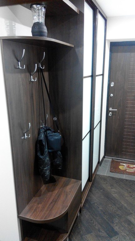 Насчет критики открытой вешалки для одежды. В принципе я тоже против, если есть вместительный шкаф в прихожей. Но вот у нас такая планировка, что шкаф далековато от входа, поэтому у входа придется сделать пару крючков для верхней одежды - надел и побежал.