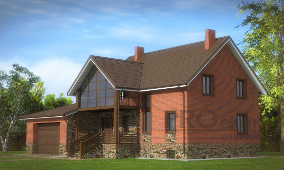 Но она будет с левого боку, так как впереди входная группа останется эркером, такой же эркер симметрично сзади.