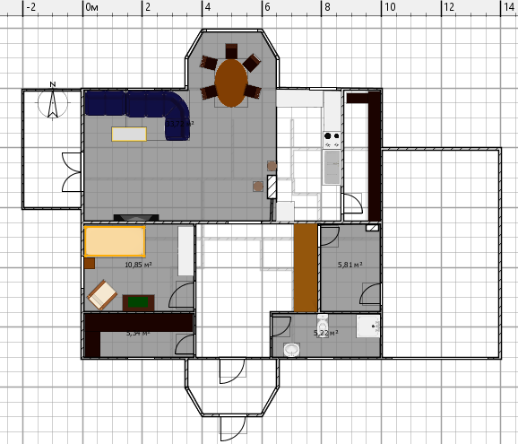 У каждого сына по комнате (спальня младших мальчиков общая, и отдельно игровая-кабинет, чтобы было потом куда разойтись), в нашей спальне есть гардеробная и санузел, и еще остается место для гостевой комнаты...