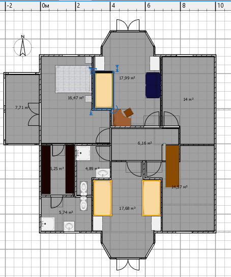 Хочется распределить комнаты так, чтобы в доме 10х10 был один стояк.