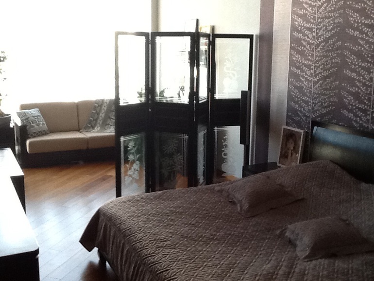 Наша спальня: обои светло-серые матовые, окно за диваном во всю стену, фото с айпада, поэтому качество оставляет желать лучшего....