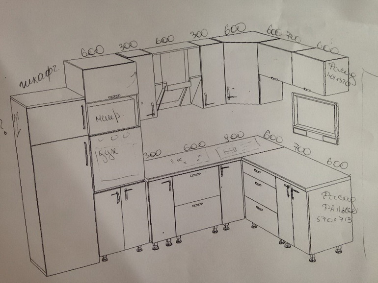 У меня похожая кухня но вот фото в повороте нет))) Если есть вибер вап сап сброшу фото. Постарайтесь не делать маленьких дверок , ящик выдвижной верхний уберите /поставьте потайной/ т.е у вас будет два выкатных а в верхнем внутри для ложек и вилок