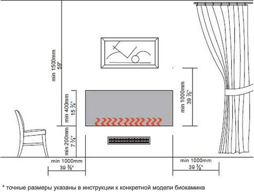 Да, это биокамин. Вообще это расстояние указывается в инструкции и у каждой модели оно может быть разным) Обычно от дна камина до телевизора указывают не менее 1 метра