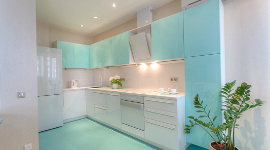 Интерьерное решение кухниРешила заказывать такую кухню, только расположение будет немного другое. Фартук хочу из бежевого кабана, т.к. холодильник тоже бежевый. А вот какую плитку сделать на пол вообще не могу даже представить. Но то, что не как на картинке точно. Посоветуйте пожалуйста что-нибудь.