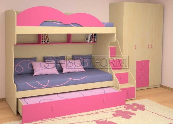 Если нравятся бортики ,рассмотрите вариант , чтоб они были трансформируемыми, когда нужно-поднять, в остальное время опустить, иначе все коленочки будут в синяках и сидеть действительно не удобно , правильно девочки пишут. На верхнюю кроватку ребенку забраться будет проблематично, необходимо будет предусмотреть лесенку с торца кровати. И избегайте в облике кровати острых углов и выпирающих элементов.