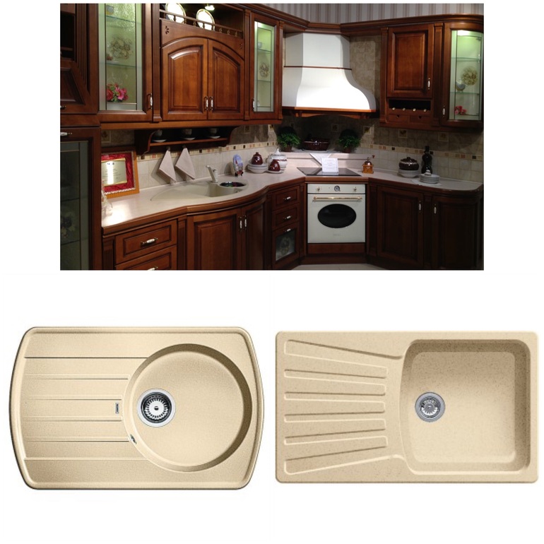 Интерьерное решение кухниСейчас пользуюсь обычной круглой мойкой из нержавейки, привыкла. Смеситель по центру.