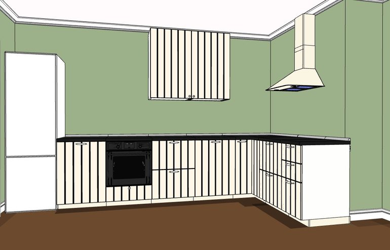 Визуально мне нравится 100 см. Тогда расклад получается такой: от пола до потолка у нас 256 см, в собранном виде столешница будет на высоте 92 см + фартук 60 см + шкаф от фартука 100 см = итого до потолка останется 4 см, то есть он пойдет впритык к потолку. А мне еще нужно сверху на него подсветку влепить.... Либо вешать его на высоте 50-55 см от столешки...
