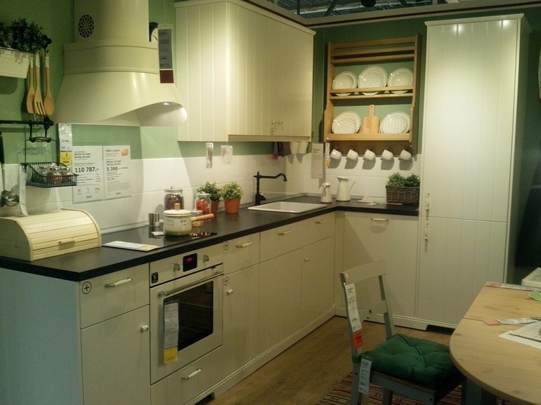 Интерьерное решение кухниДевчат, со дня на день поеду покупать кухню в икею, но мучает меня один момент: какой высоты все-таки взять верхние шкафы? Варианты - 100 см или 80 см.