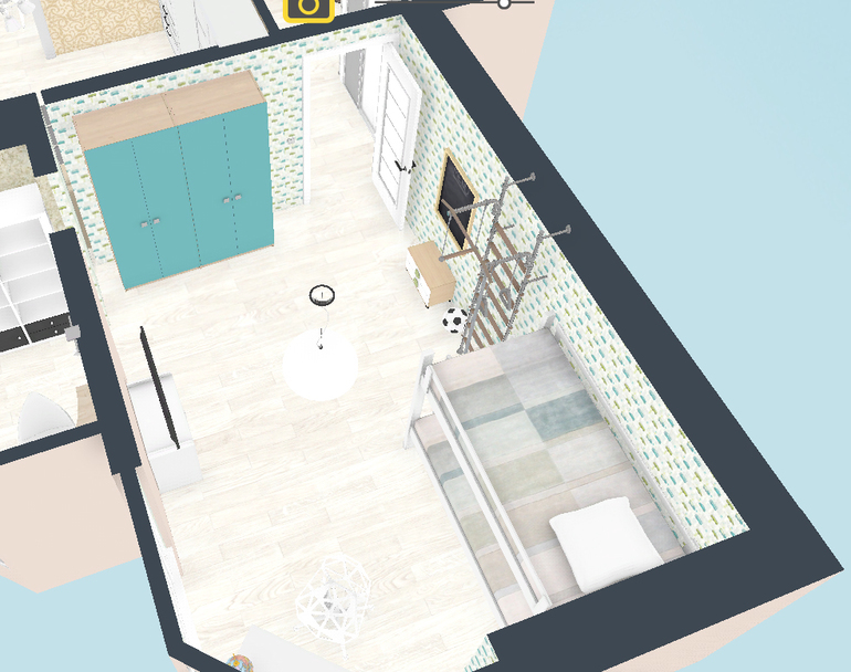 Интерьерное решение детской комнатыИмеем вот такую детскую комнату для двух мальчиков 8 и 3,7 лет, 5,23х3,21 м. На углу эркерное окно, потолок в зоне окна закруглен. Подоконник планировала делать большой, столешницей, чтобы уроки делать за ним. Шторы соответственно типа римских или рулонных.