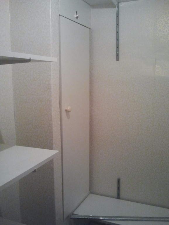 Интерьерное решение прихожих, коридорчиковПервое что покажу из нашей ипотечной квартиры в новостройке - это гардеробная. Комната 2,6 м.кв. Стена с полками 140 см (полки 120 и осталось место для гладильной доски и пылесоса). Короткая стена 100 см, правая стена 200 см. Еще нет потолков((( Будут натяжные. Уложились в 7 тыс.руб