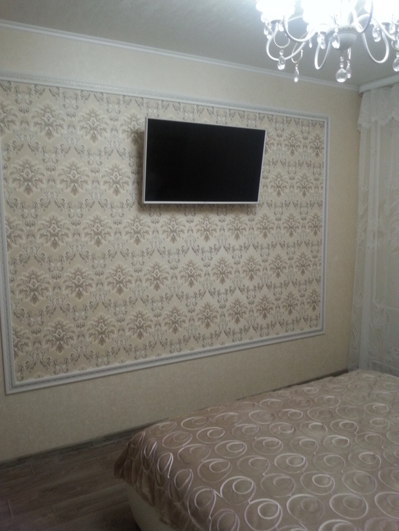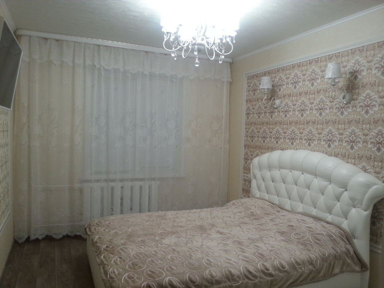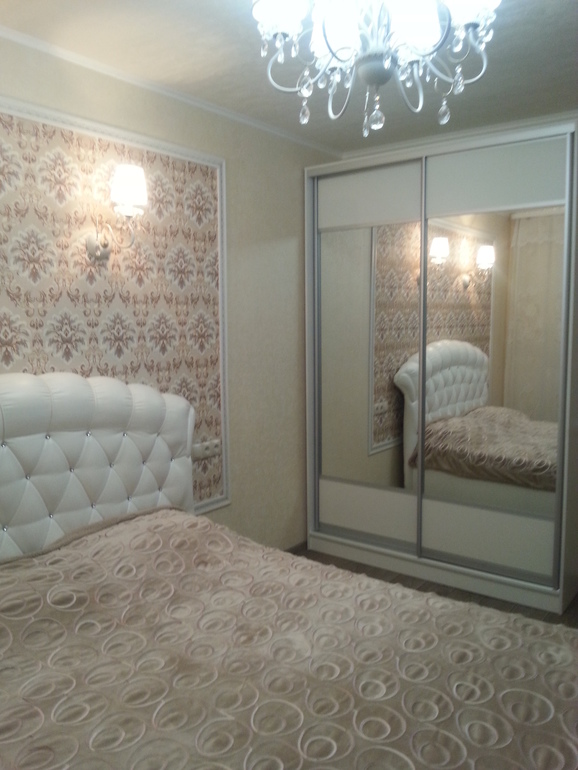 Пока ещё не всё доделано. На занавески не смотрите, висит пока что есть. Планирую повесить белую вуаль. Возможно ночные в тон обоям в изголовье. Со шкафом тоже долго носились. В итоге заказали самый обыкновенный купе и не пожалели. Не хотела прикроватных тумбочек. купили вот такие столики в икее. Купили белую краску в баллоне. Будем их красить. А как у вас получился ремонт? Какой шкаф выбрали? Интересно увидеть фото.