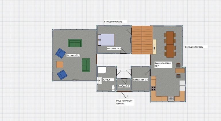 Ага, не хотим их рядом! А терраса есть, просто я ее не отрисовала)))) не принципиальна на этом этапе)))