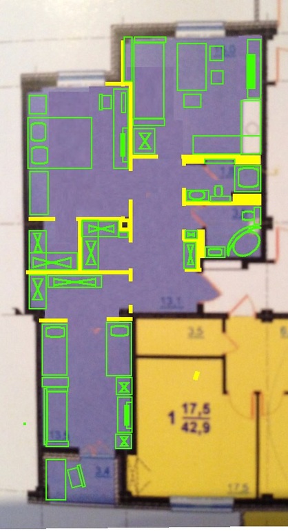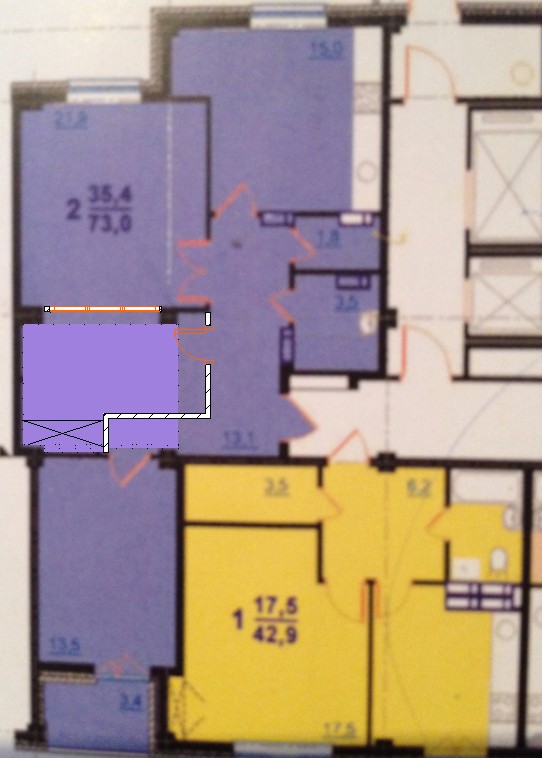 У нас тоже перепланировка. Сейчас покажу примерный наш выриант: