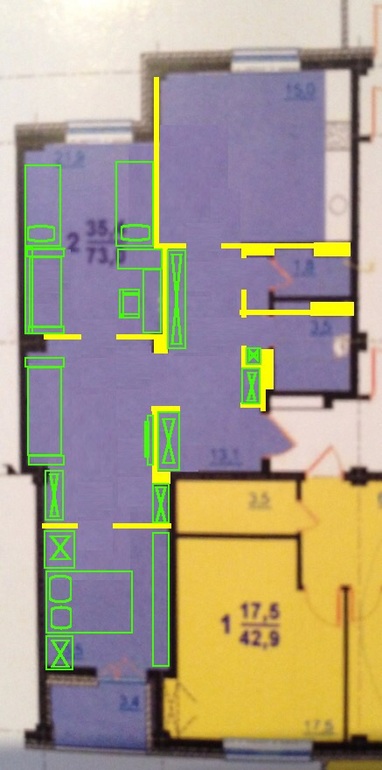 У нас будет кухня-гостинная и две спальни.