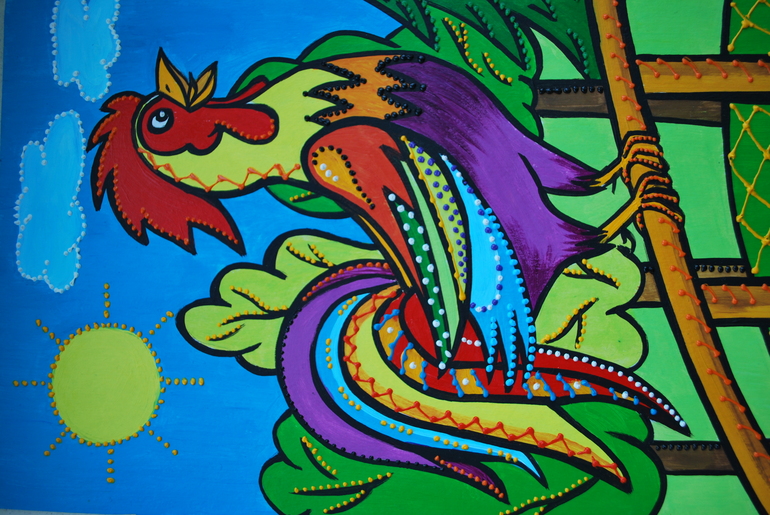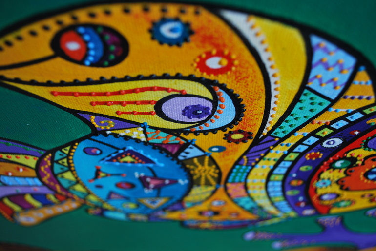 Понравились картины в вашей технике с точками и объемными элементами. Игуана, рыбка и т.п.