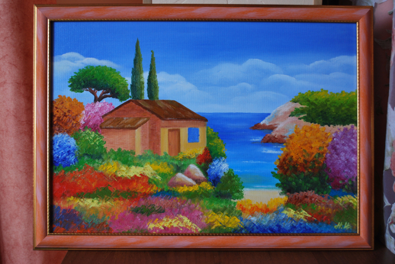 Размер 30х40, масло, холст на картоне, цена без рамки 2000... Не понравилась рамка?)) Она просто по цветовой гамме подошла..Если хотите, киньте мне на почту пустое письмо ( iinn@mail.ru), а я вам пришлю ссылочку на мою страничку, где есть почти все картины с размерами и ценой, потому что здесь только часть картин... Вдруг что то приглянется. Вообще цены оговариваются всегда, я очень лояльна, иногда могу пересмотреть цену, иногда не могу)))