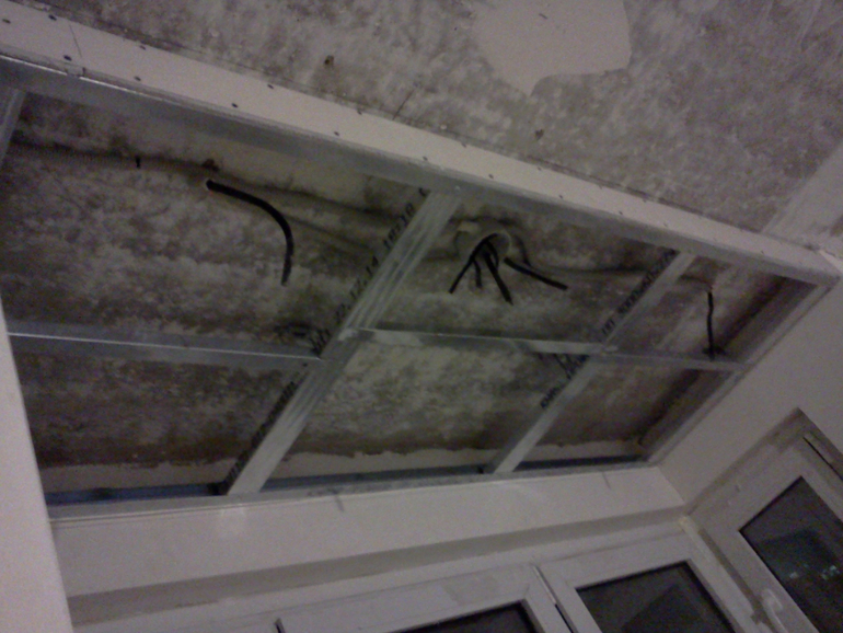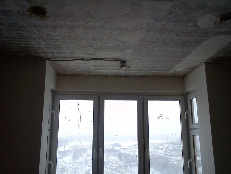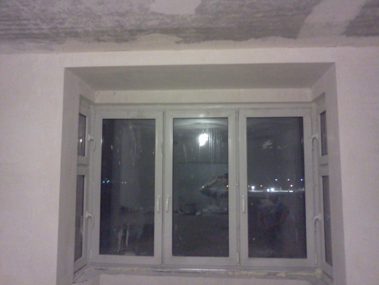 Так же как и в детской зашили трубы гипсокартоном, в эркере опустили потолок для светильников. Сняли старый подоконник, тут мы планируем потом сделать более широкий чтобы использовать его как стол (для ноутбука например).