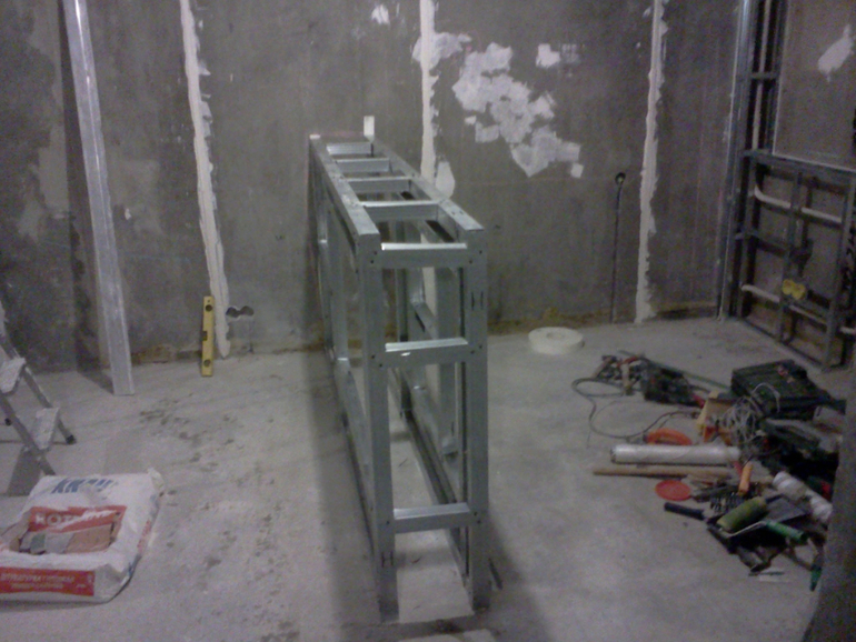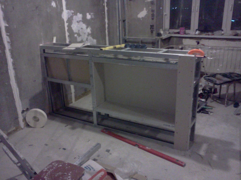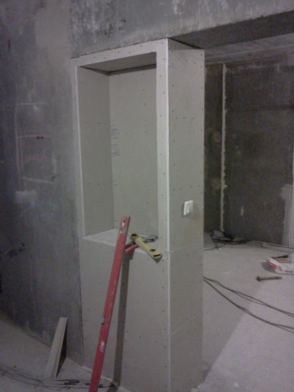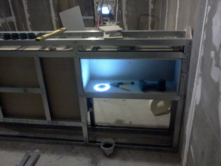 Перегородку сделали очень массивной, но я хотела использовать все по максимому и в перегородке у нас есть полки.