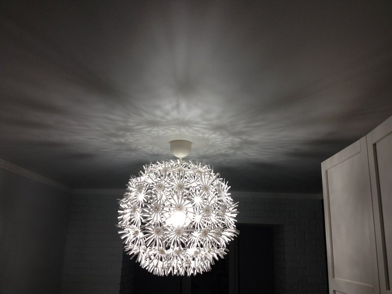 Обратите внимание, что в глянцевом потолке все отображается, например лампочка телевизора или зарядки телефона, ночью будет бить по глазам как в зеркале, у нас в спальне глянец, пожалели, поэтому в детскую точно не советую.