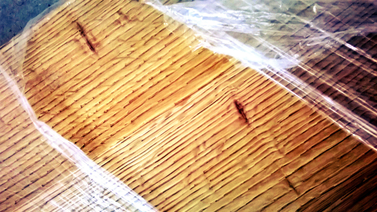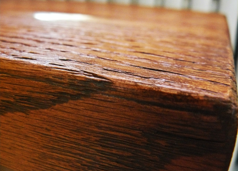 Не смотря на то, что все утверждали оставить все, как есть, мол, и покрыто идеально ровно, и вид, как у заводского подоконника, мы с мужем решили отвезти его обратно в цех, чтобы там, с помощью брашировки, нам сняли наше масло.