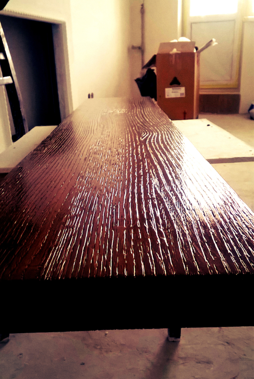 Так и сделали. После очередного браширования столешница снова стала светлой, а сами прожилочки еще глубже и фактурнее. На этот раз я уже покрыла тоненькими слоями, как и рекомендует производитель масла :)) Результат нас полностью удовлетворил и порадовал!