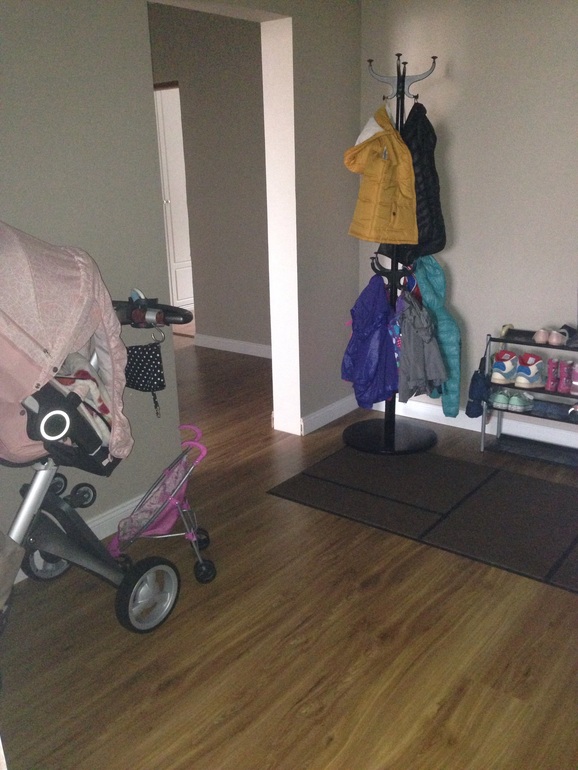 У нас вот такой икеевский снизу резина, правда расцветка так себе, но зато справляется с грязью и водой на отлично, а то с 5 детьми совсем плохо в такое время. На мебель не смотрите еще идет ремонт и нет мебели. Кстати использую этот коврик только в грязное время.